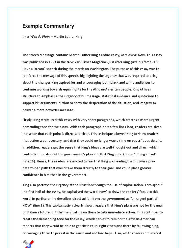 Example IB English Commentary PDF Martin Luther King Jr Essays