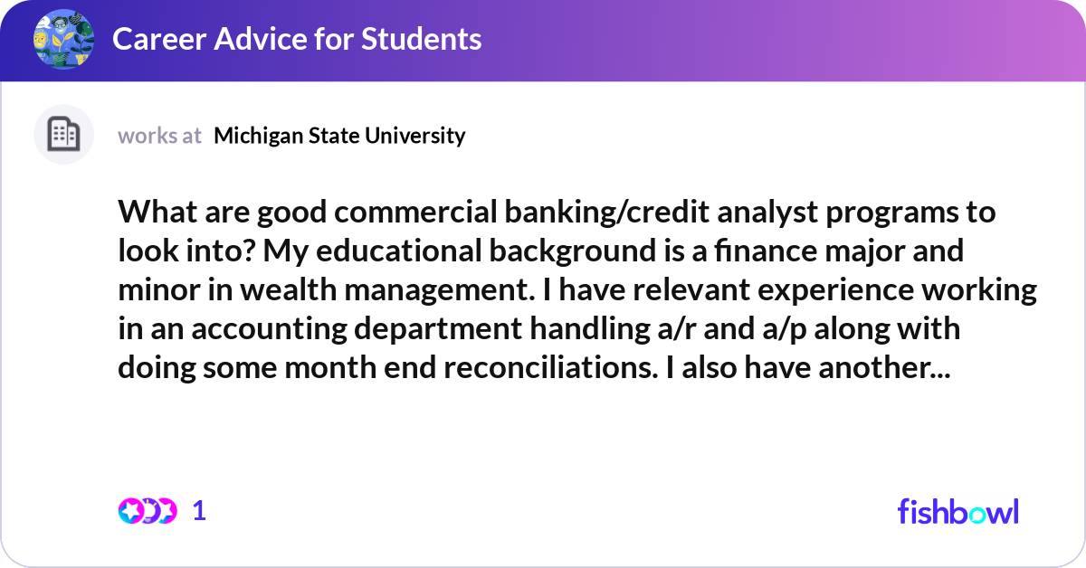 What are good commercial banking/credit analyst pr Fishbowl