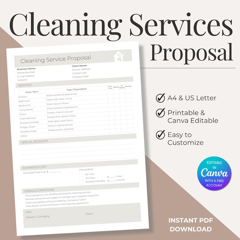 EDITABLE Cleaning Proposal WORD Cleaning Estimate Template Etsy