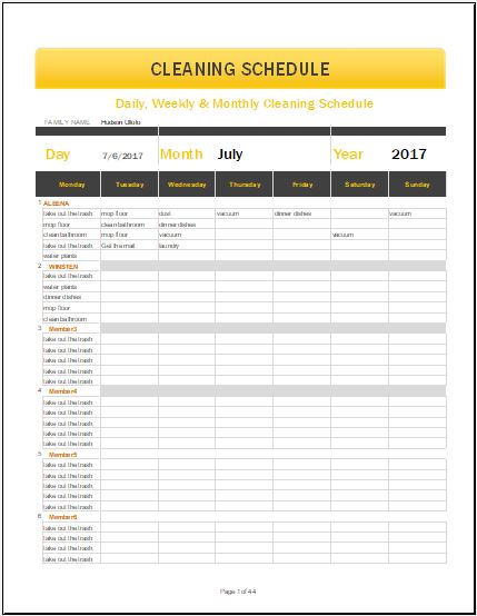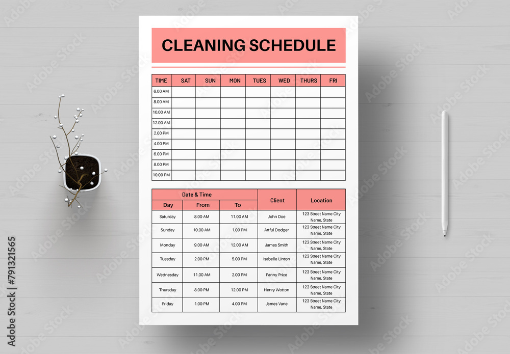 Cleaning Schedule Template Stock Template Adobe Stock