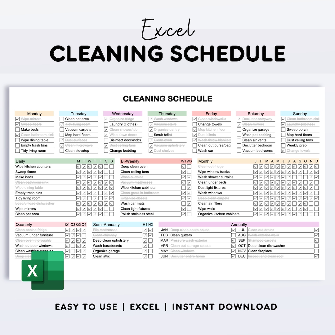 Customizable Cleaning Schedule Excel Checklist for Daily Weekly