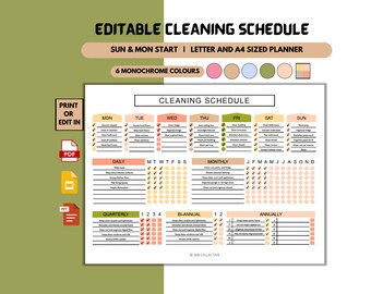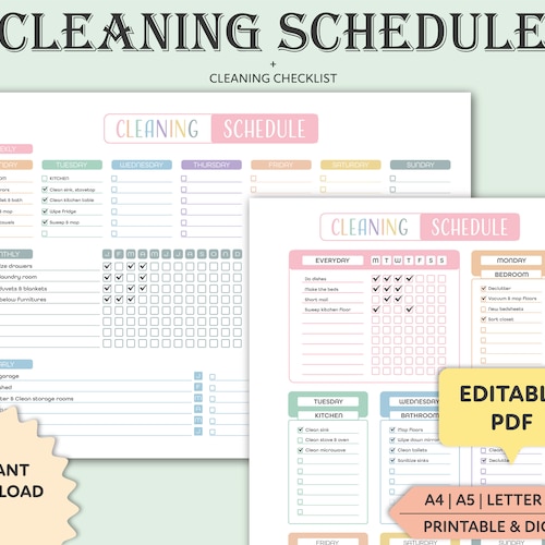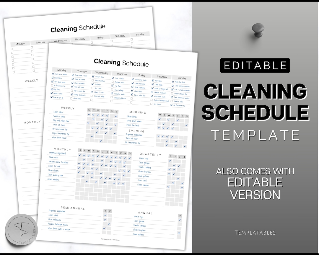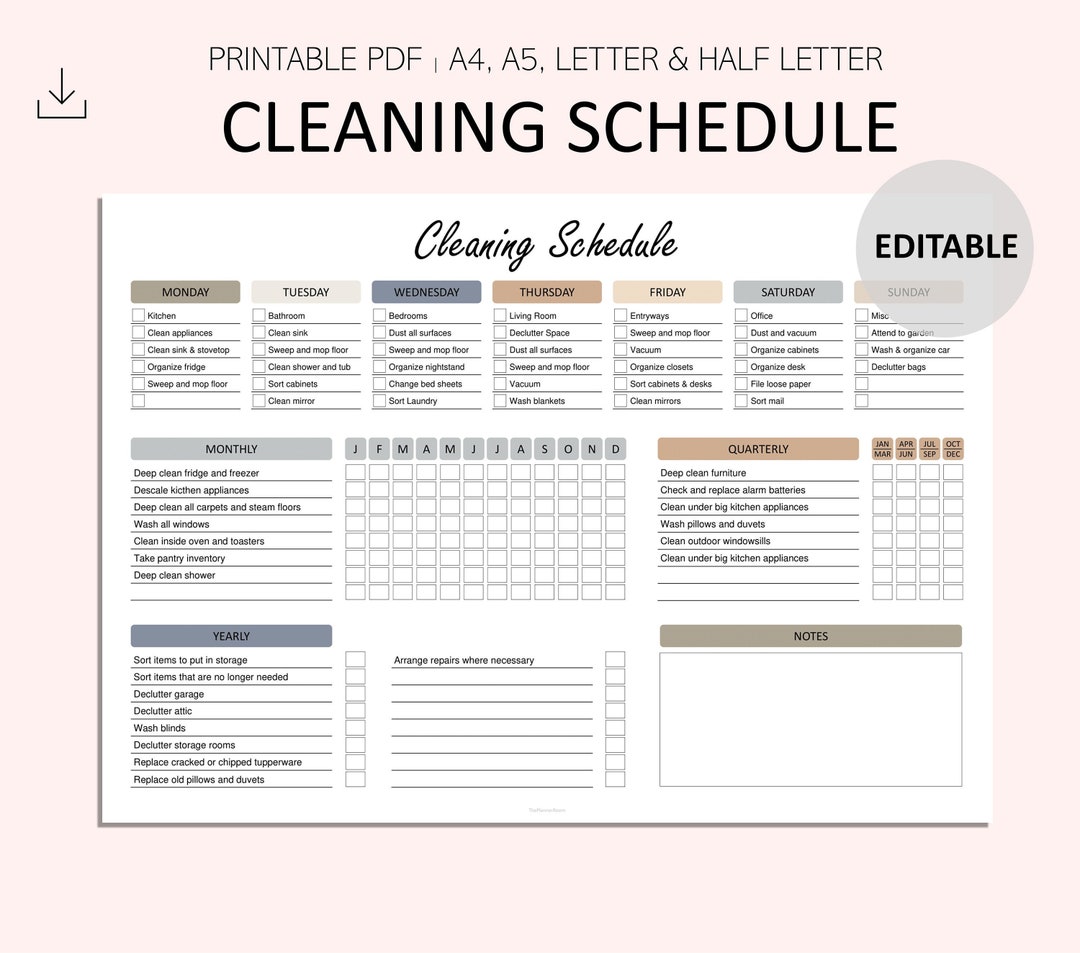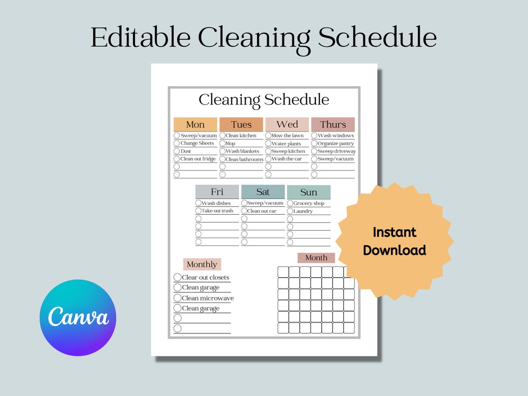 Printable Editable Cleaning Schedule: Week Month and Etsy