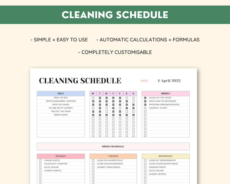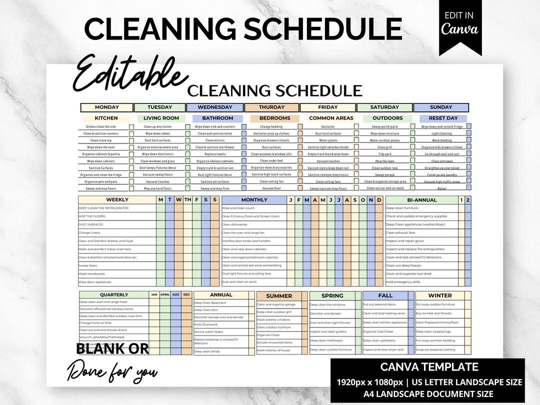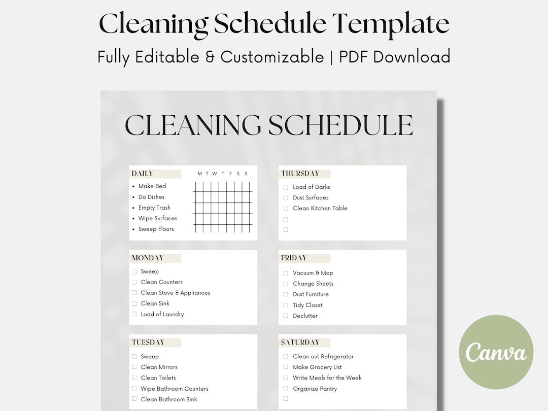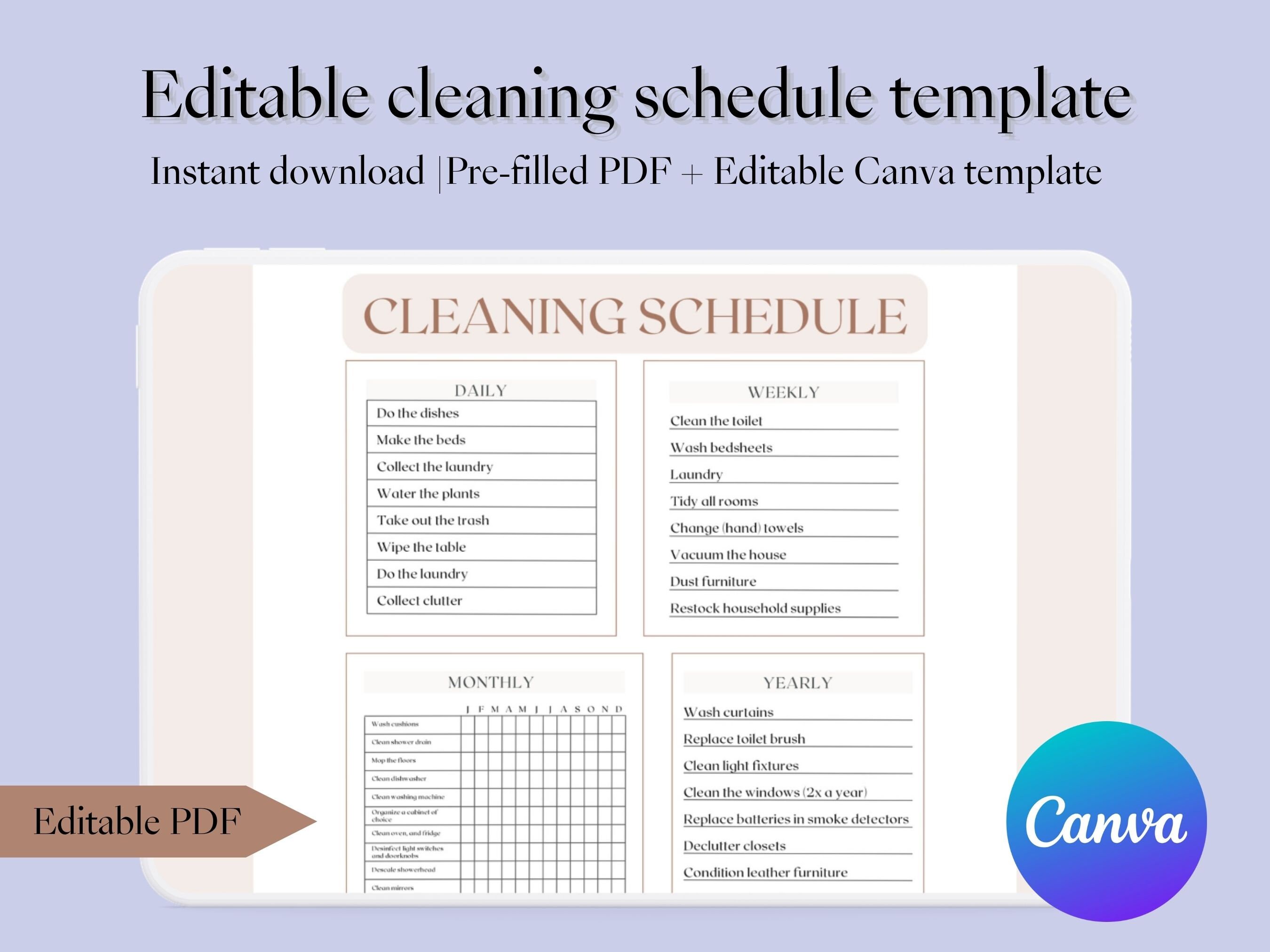 Cleaning Schedule Template Etsy