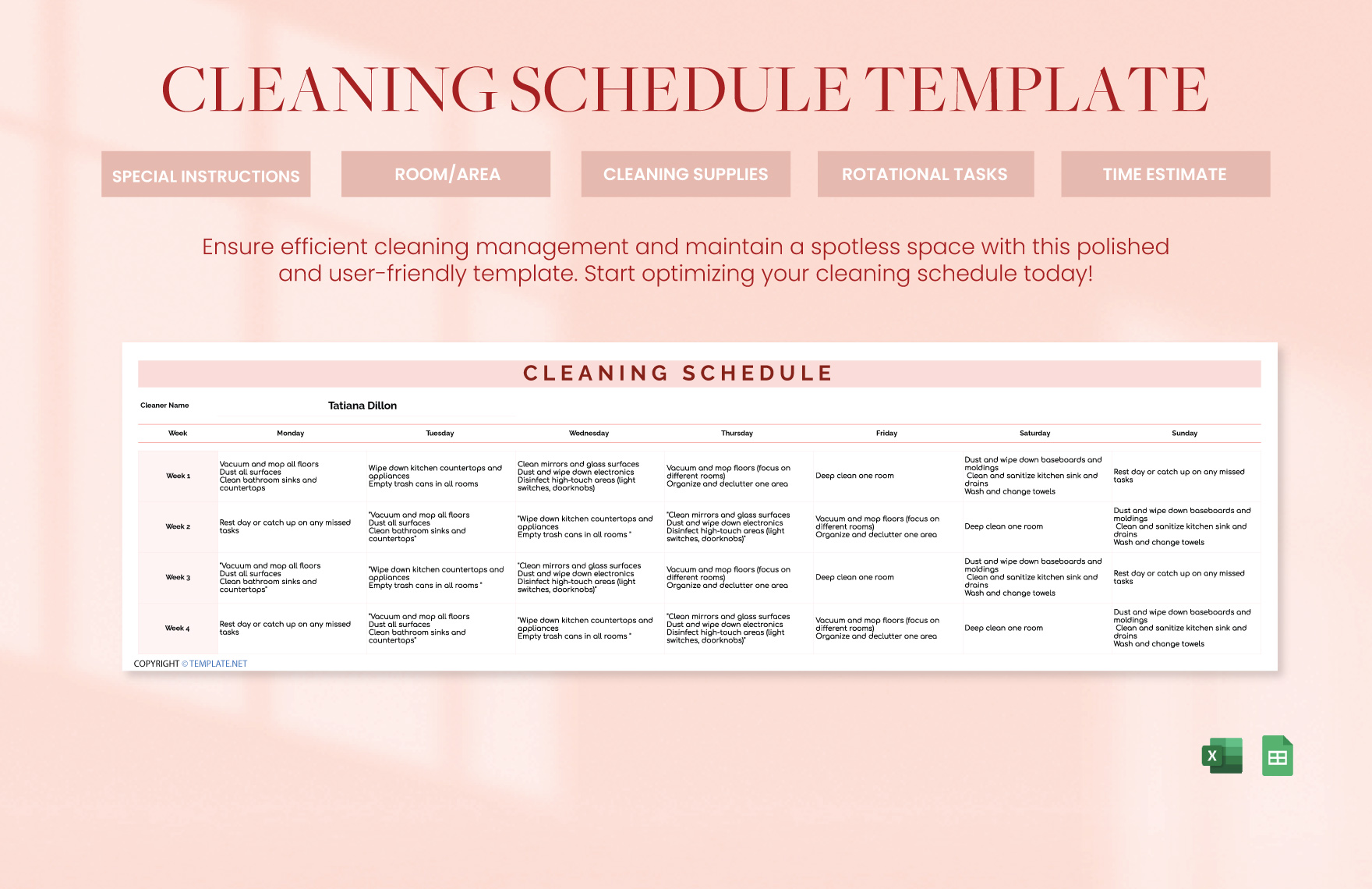 Cleaning Schedule Template Download in Excel Google Sheets