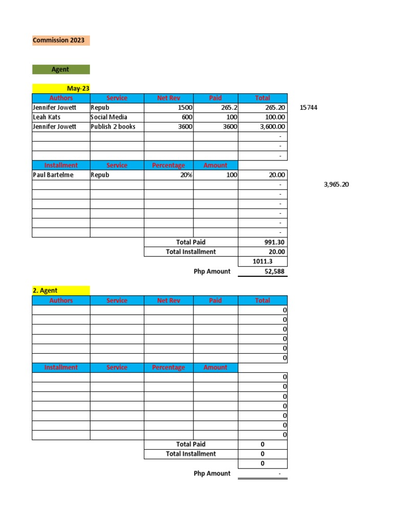 free commission sheet fake template in Excel and PDF format version 2