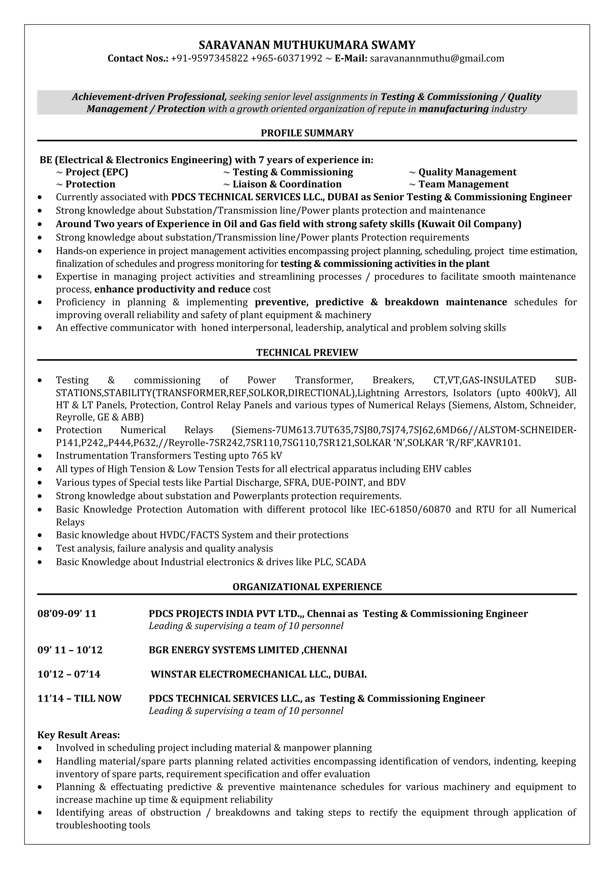 Mechanical Commissioning Engineer Resume Sample Tips Online Resume
