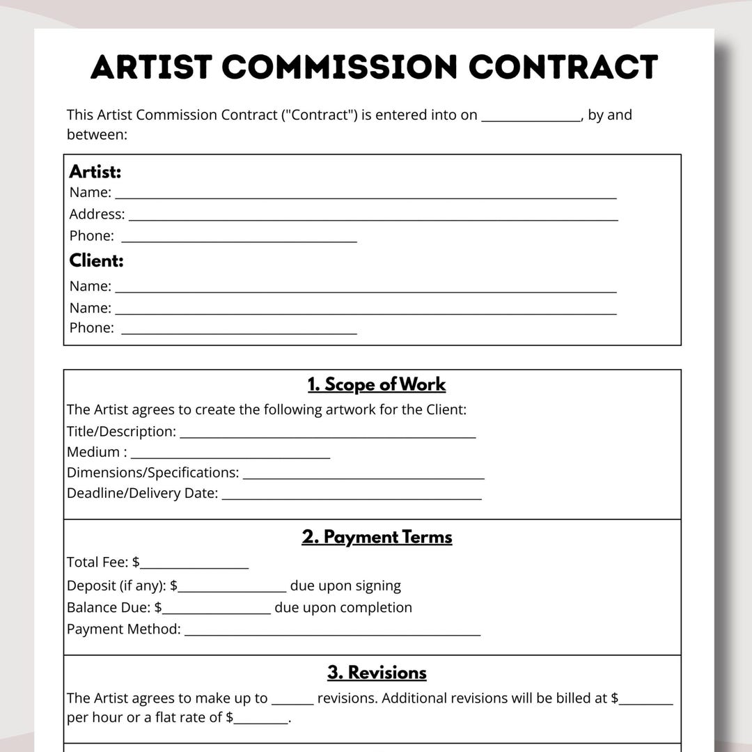 Artist Commission Contract Template Word / PDF Fully Customizable and