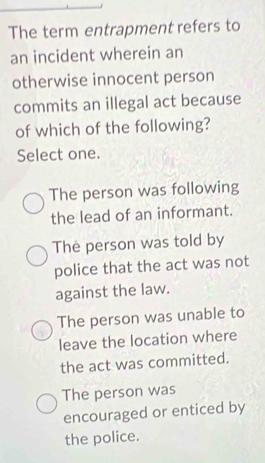 Solved: The term entrapment refers to an incident wherein an otherwise
