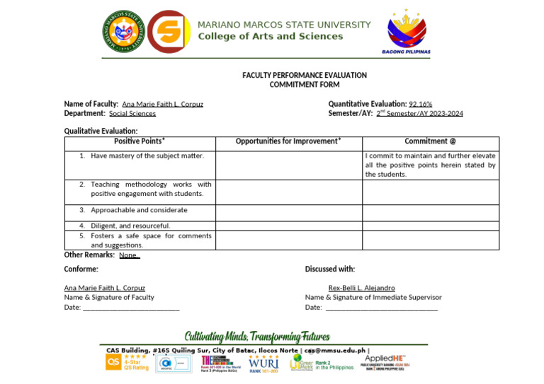 Individual Performance Commitment and Review Form (IPCRF) Template