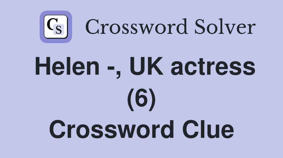 Helen UK actress (6) Crossword Clue Answers Crossword Solver