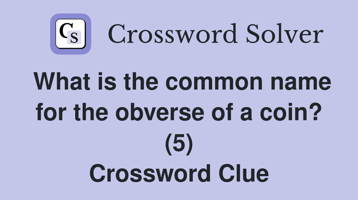 What is the common name for the obverse of a coin? (5) Crossword Clue