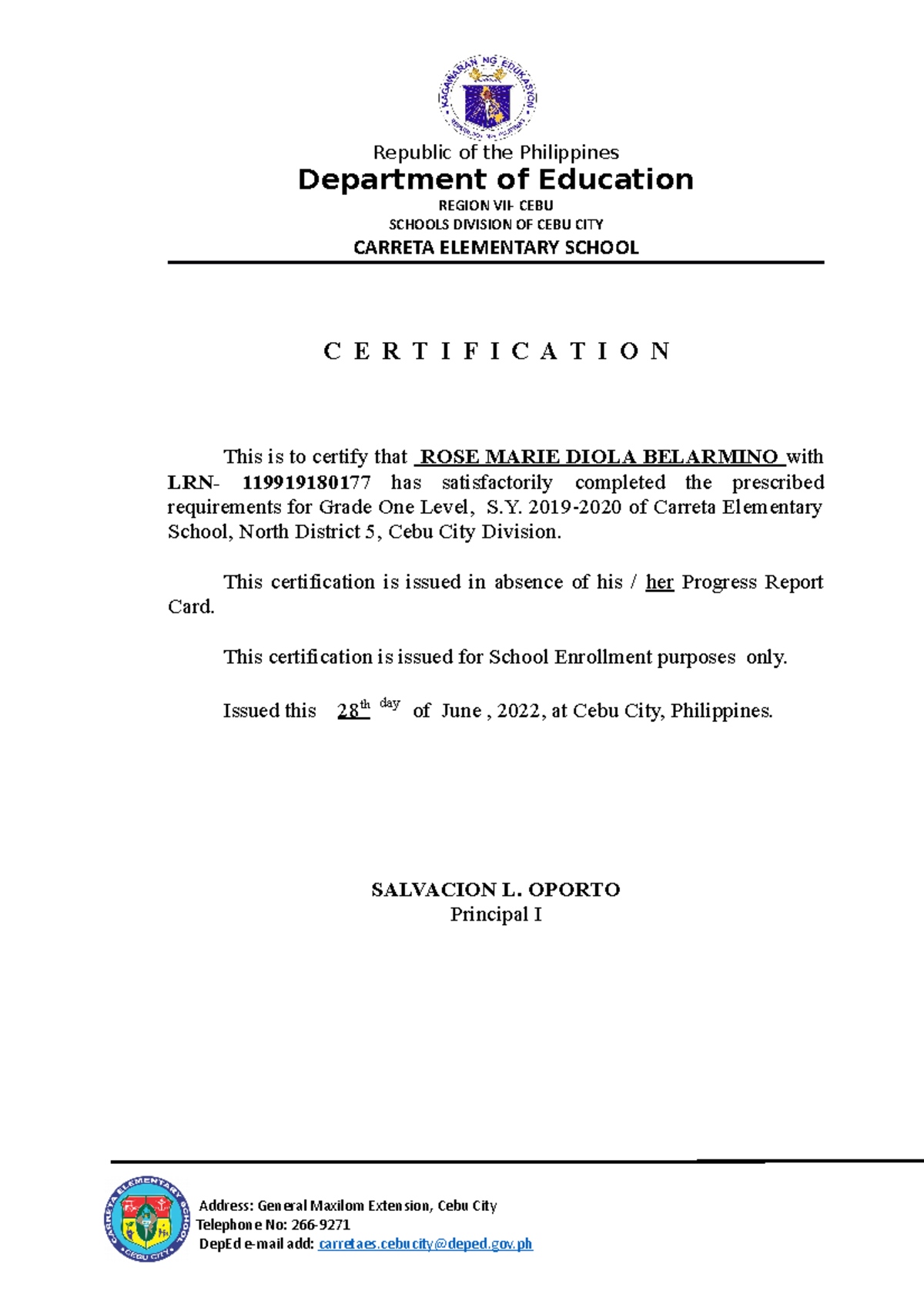 Certificate of In absence of Csrd Republic of the Philippines