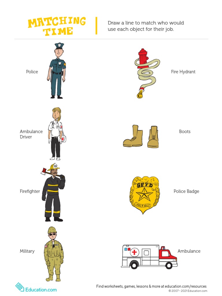 Matching: Community Helpers Printable ELA Worksheet Worksheets Library