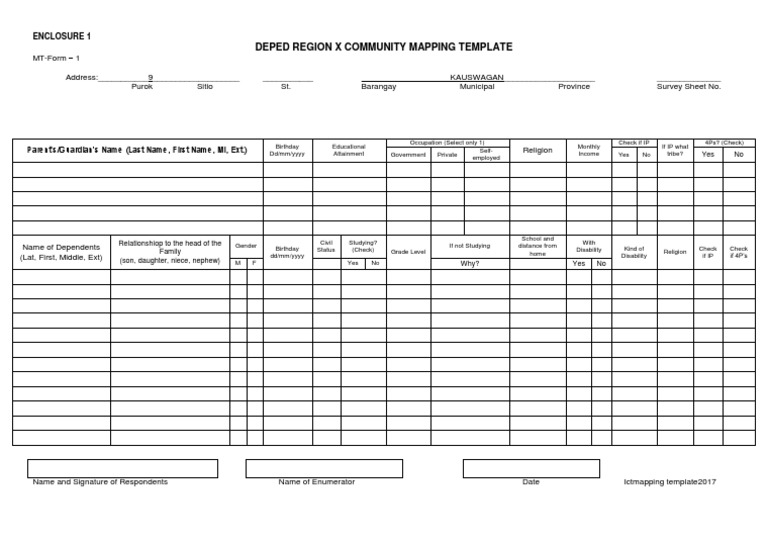 Community Mapping Template 2 Xls Enclosure 1 Deped Region X Vrogue
