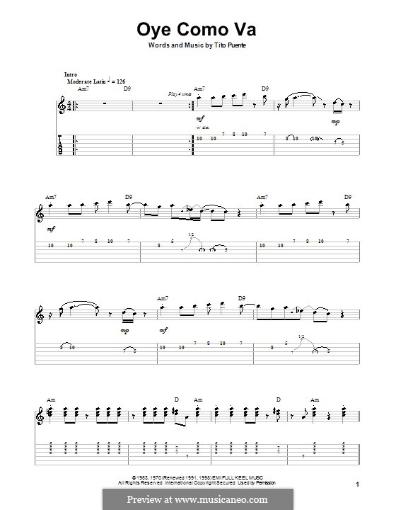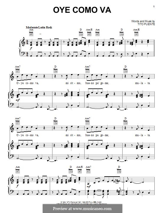 Oye Como Va (Santana) von T Puente Noten auf MusicaNeo
