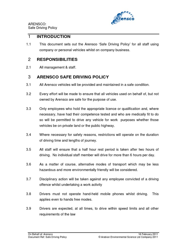 A sample safe driving for work policy: Aim of this policy Driving