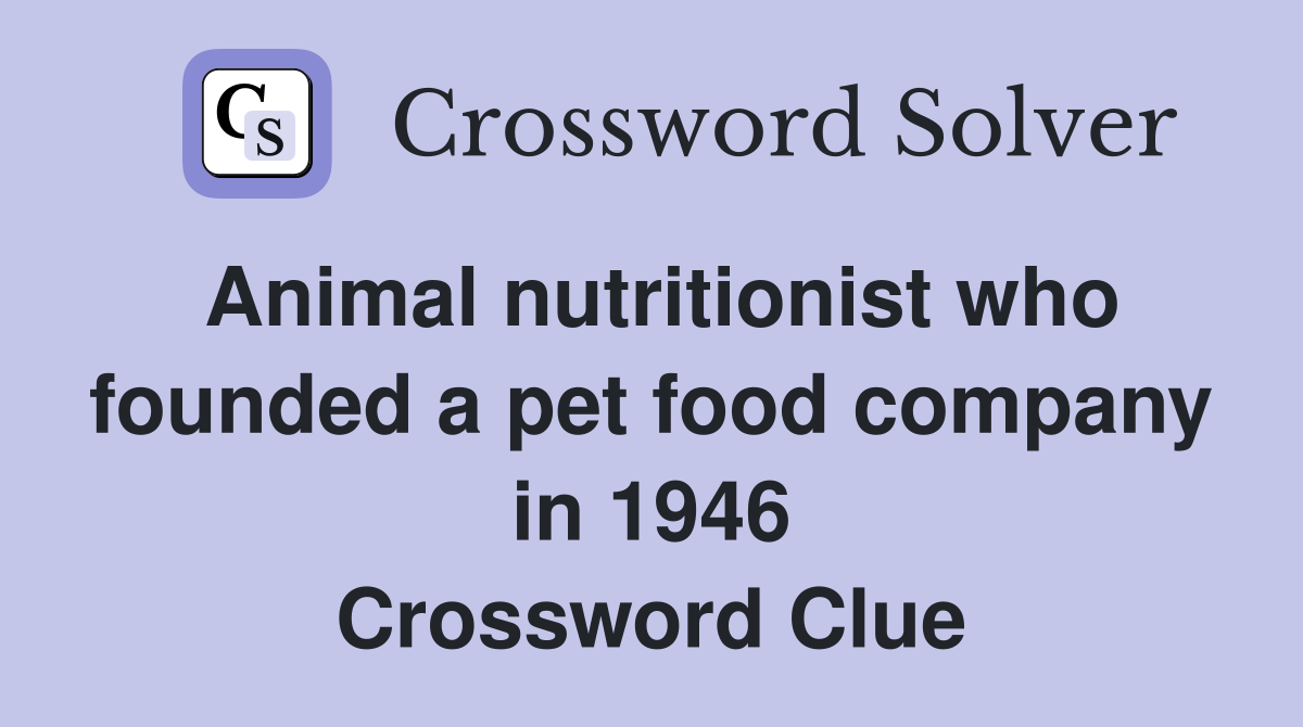 Animal nutritionist who founded a pet food company in 1946 Crossword