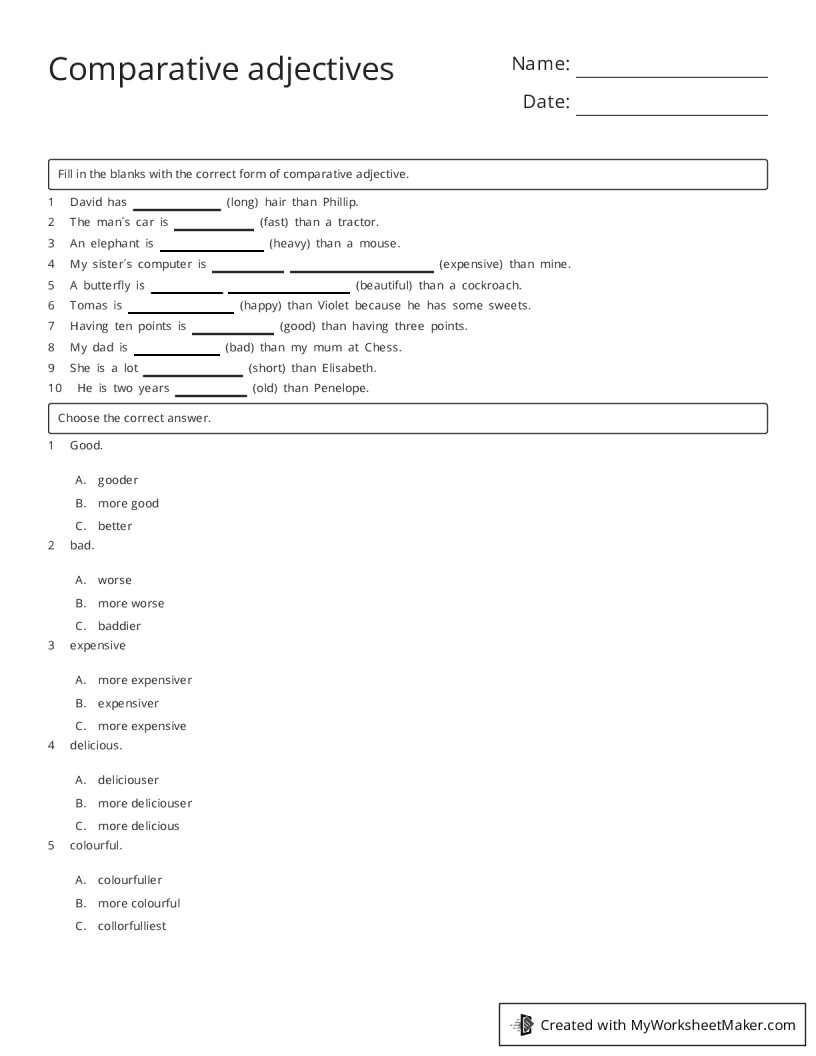 Comparative adjectives My Worksheet Maker: Create Your Own Worksheets