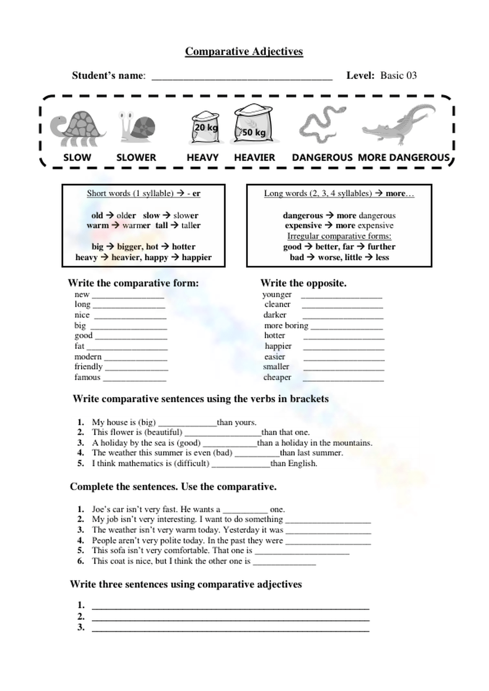 Pdf online worksheet: Comparative adjectives Live Worksheets