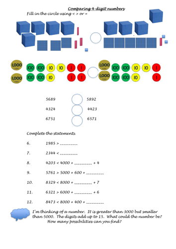 Comparing 4 digit numbers Year 4 Teaching Resources
