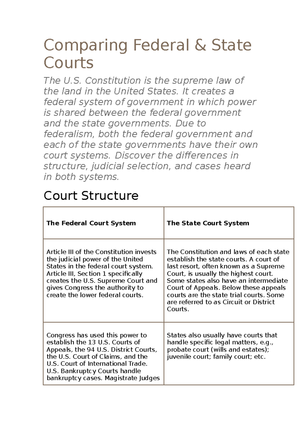 Comparing Federal State Court Systems: Structures Selection Studocu