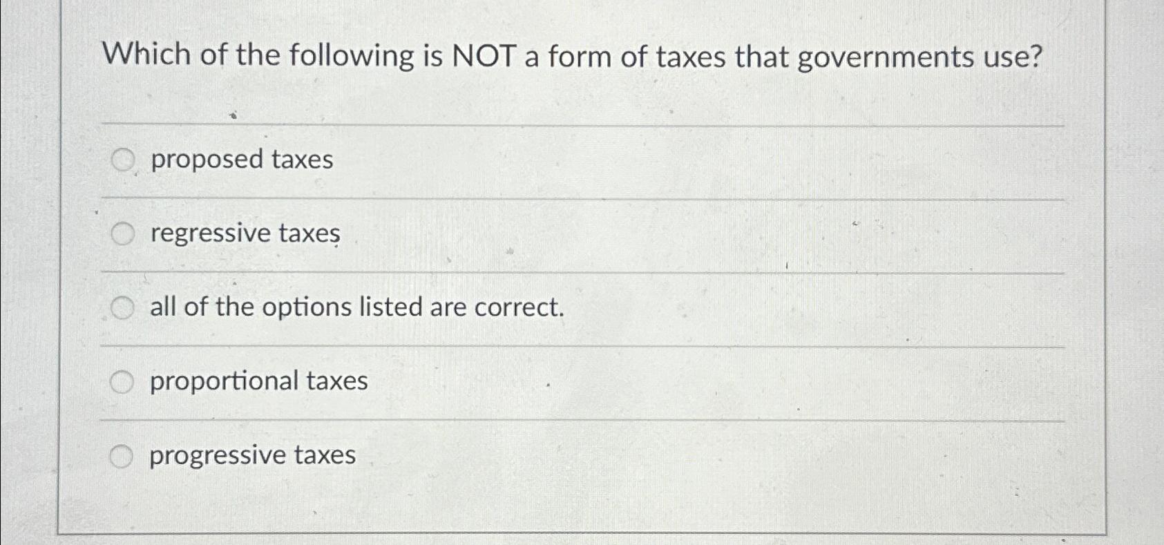 Solved Which of the following is NOT a form of taxes that Chegg com