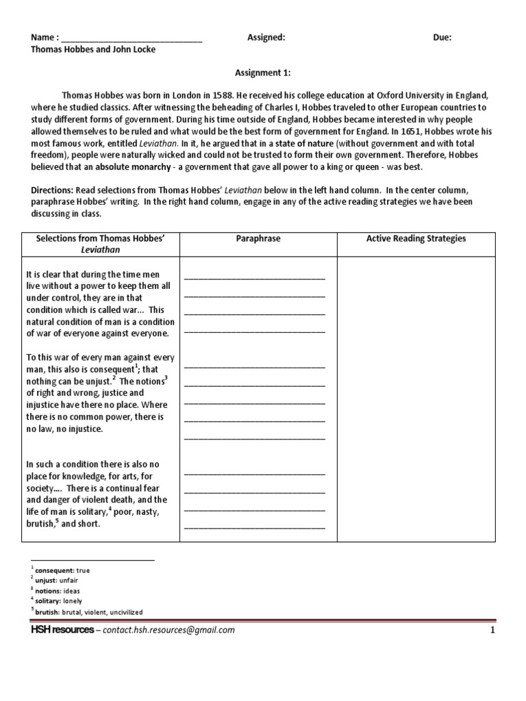 JOHN LOCKE AND THOMAS HOBBES WORKSHEET Mulquirochim Blog