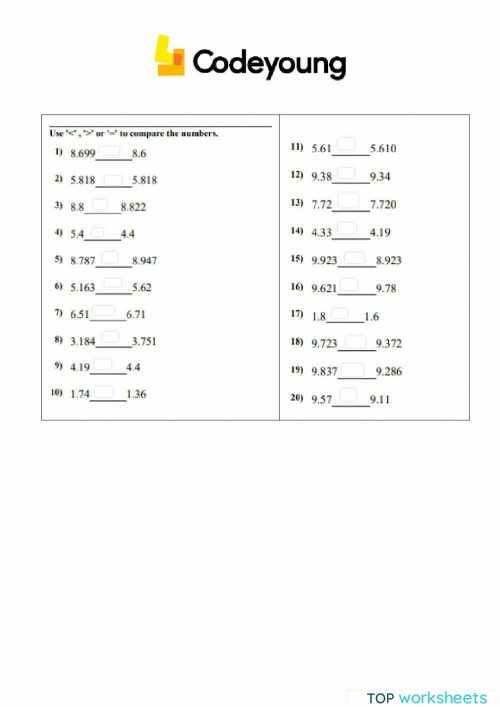 Comparison of Decimals Advanced Interactive worksheet TopWorksheets