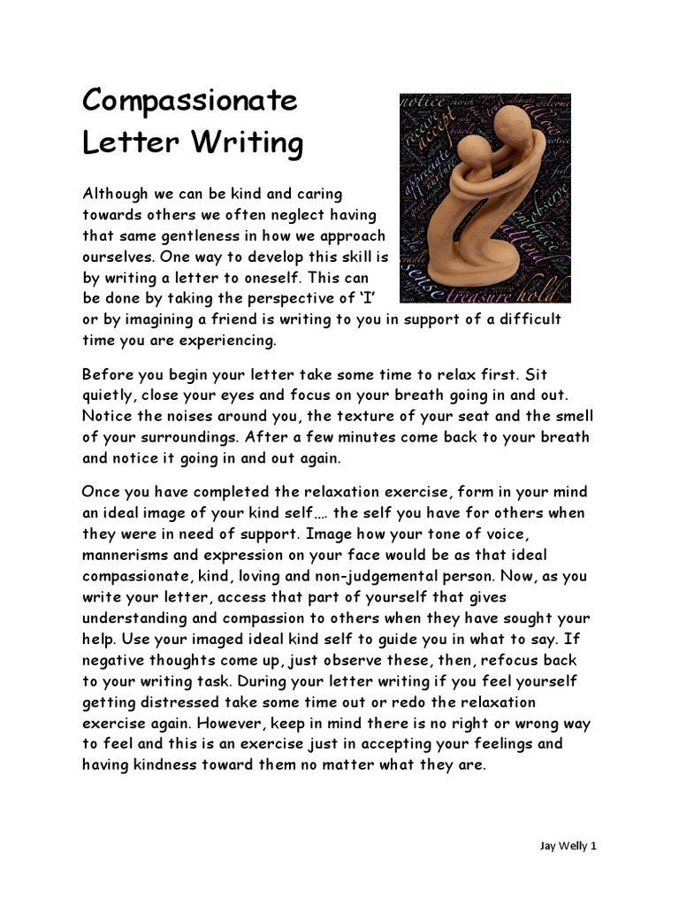 Compassionate Letter Writing To Build Self confidence Worksheet