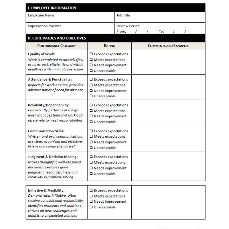 Employee Evaluation Form PDF Performance Appraisal Organizational