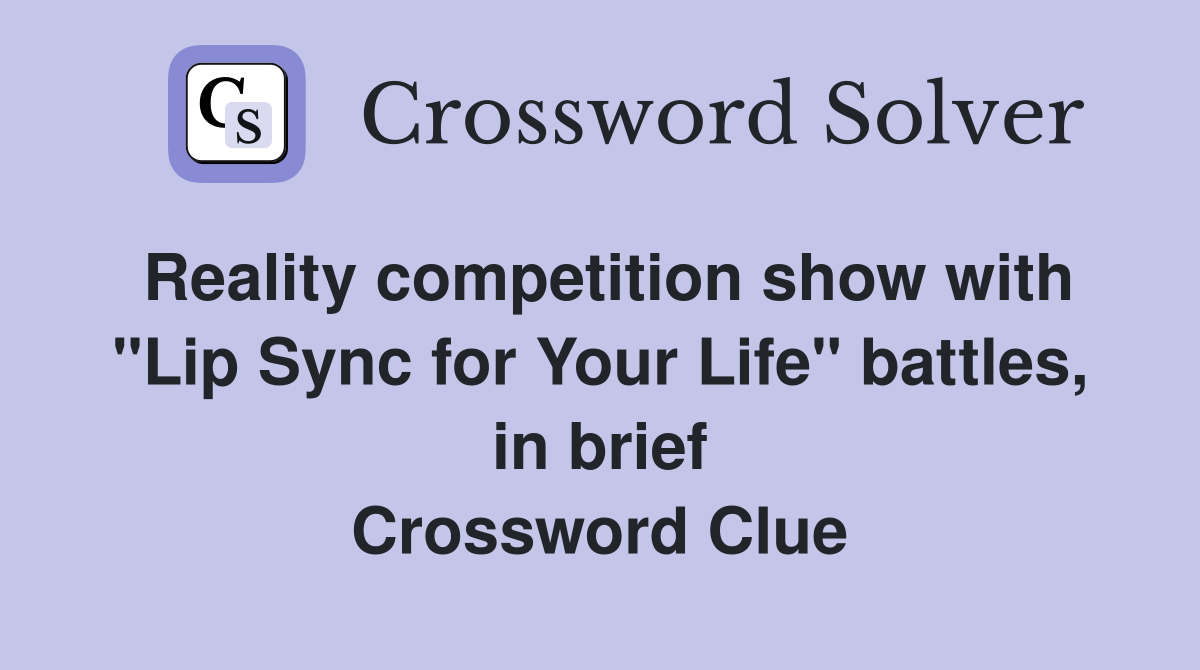 Reality competition show with quot Lip Sync for Your Life quot battles in