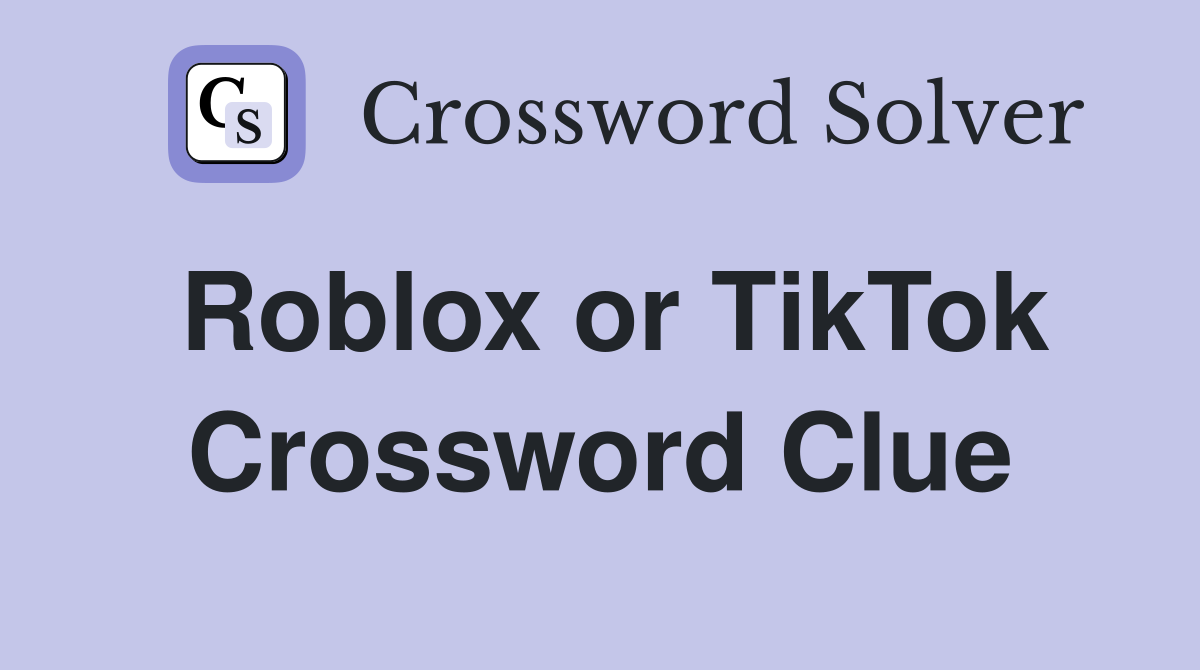 Roblox or TikTok Crossword Clue Answers Crossword Solver