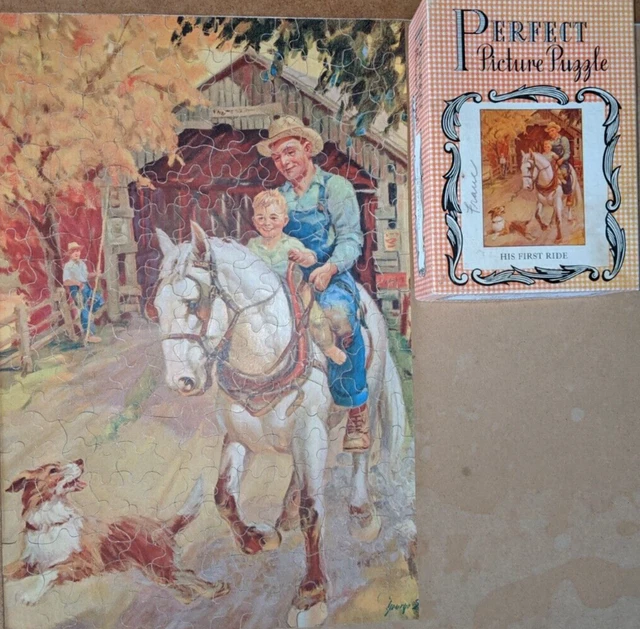 VINTAGE JIGSAW PERFECT Picture Puzzle His First Ride 275 15x10 Complete