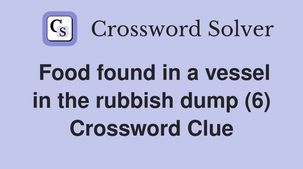 Food found in a vessel in the rubbish dump (6) Crossword Clue Answers
