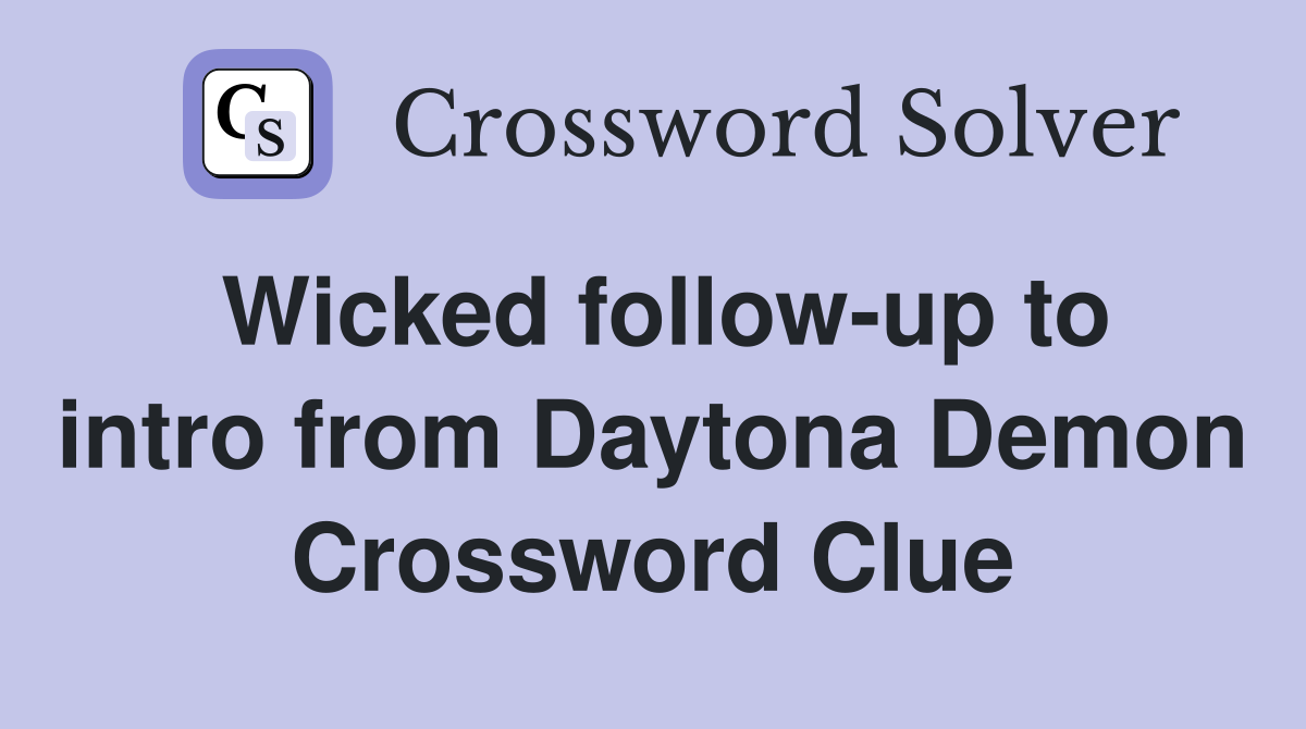 Wicked follow up to intro from Daytona Demon Crossword Clue Answers