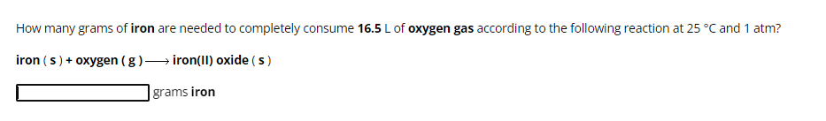 ANSWERED How many grams of iron are needed to completely consume 15 1