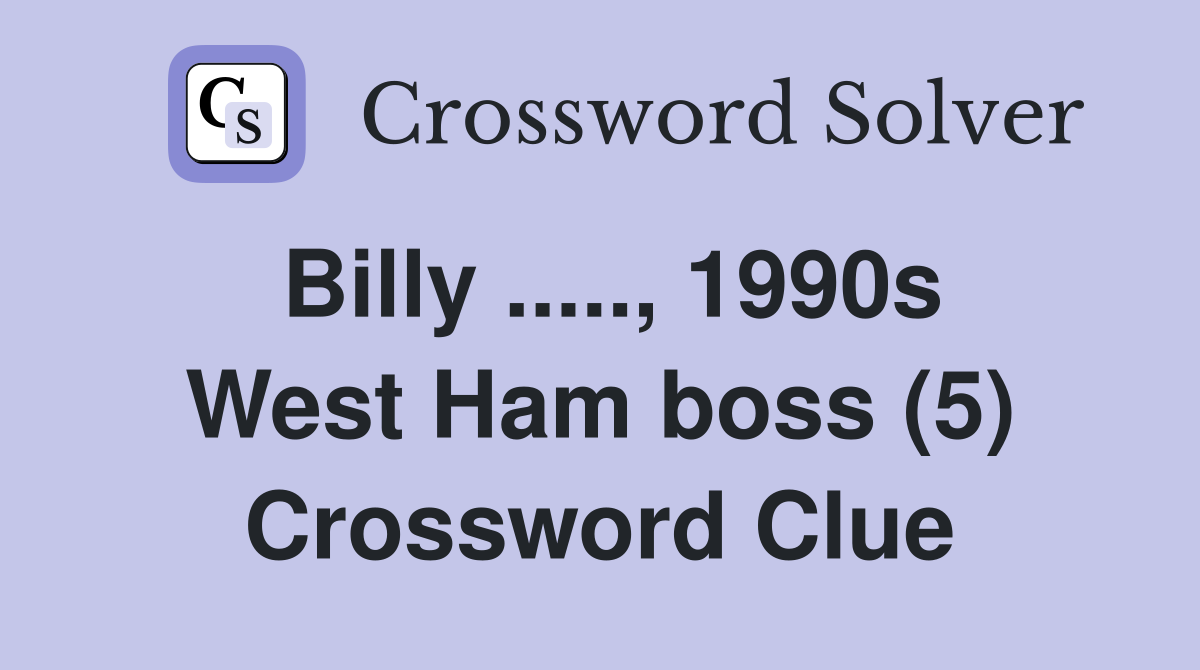Billy 1990s West Ham boss (5) Crossword Clue Answers