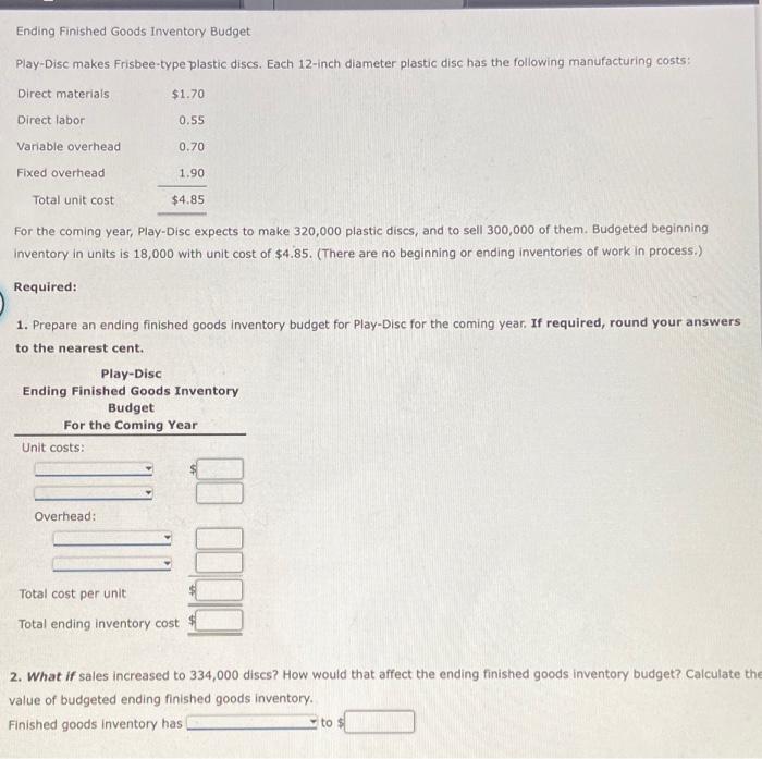 Solved Ending Finished Goods Inventory Budget Play Disc Chegg com