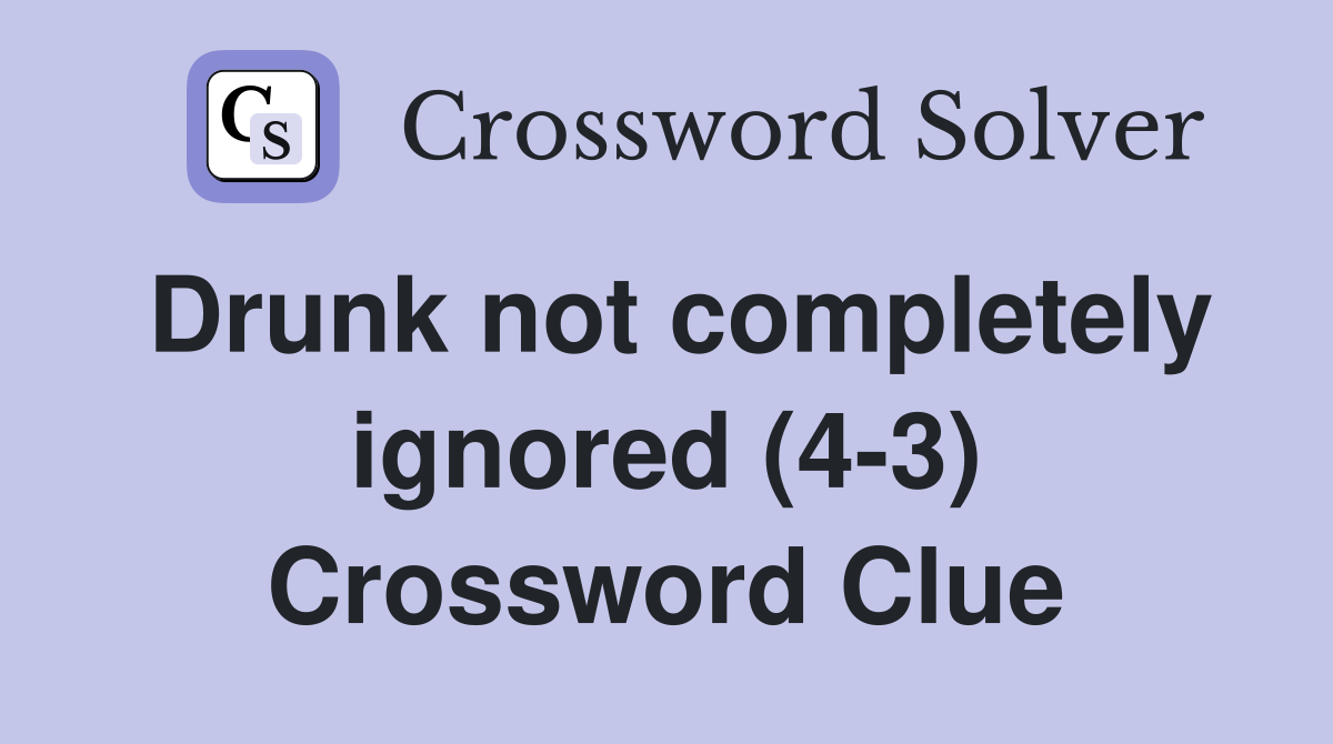 Drunk not completely ignored (4 3) Crossword Clue Answers Crossword