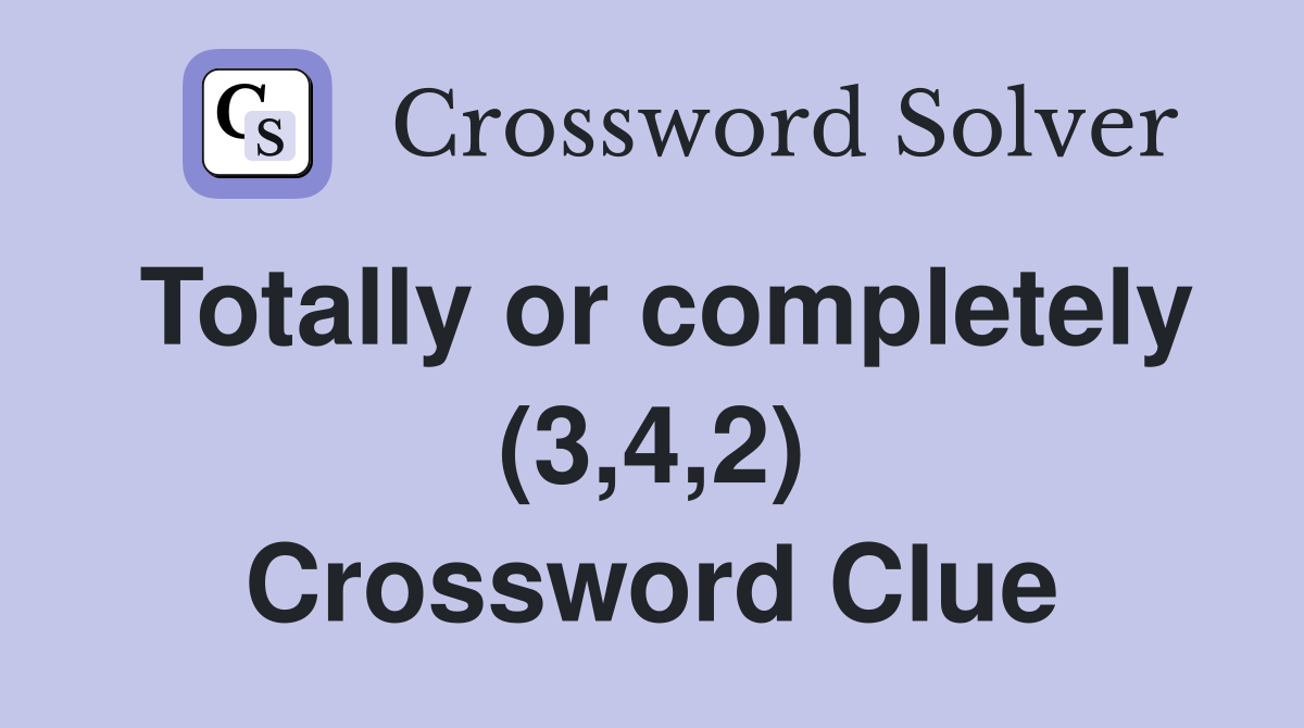 Totally or completely (3 4 2) Crossword Clue Answers Crossword Solver