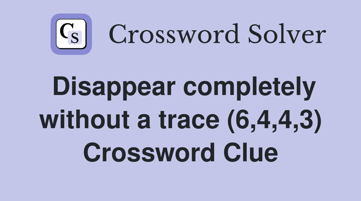 Disappear completely without a trace (6 4 4 3) Crossword Clue Answers