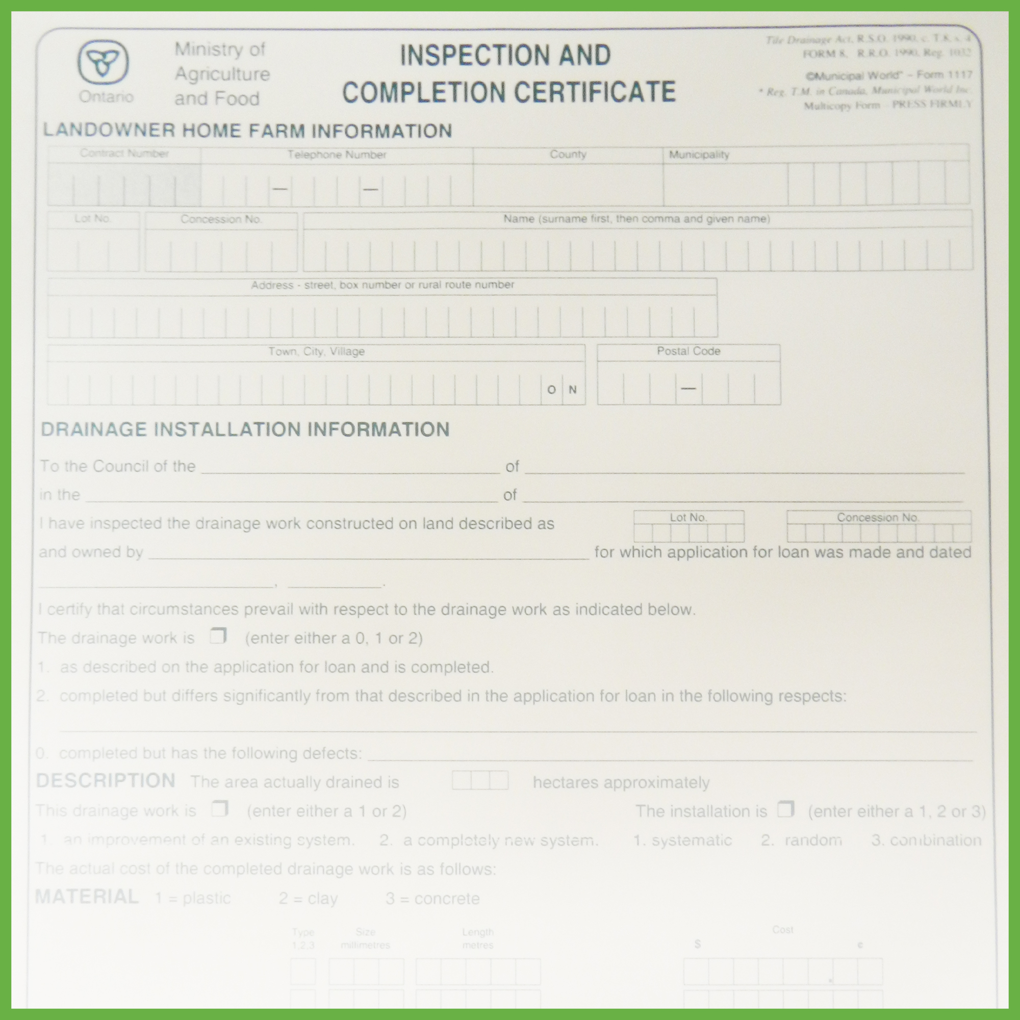 Inspection and Completion Certificate Form 8