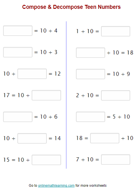 Compose And Decompose Numbers Worksheets