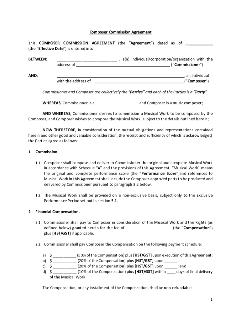 Fillable Online 4837 4336 9726 Model Composer Agreement (Commission
