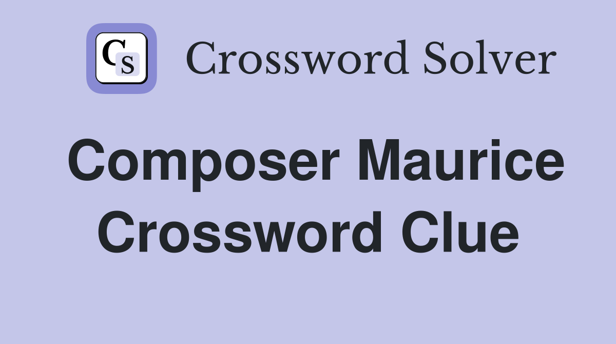 Composer Maurice Crossword Clue Answers Crossword Solver