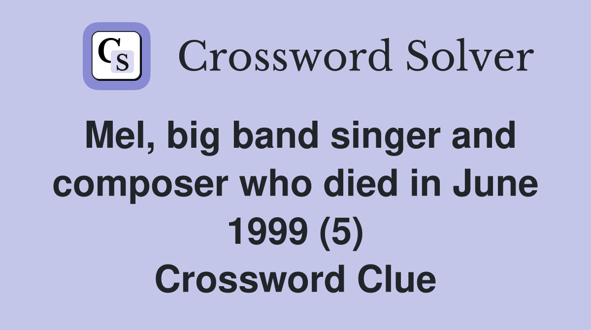 Mel big band singer and composer who died in June 1999 (5) Crossword