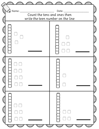 Teen numbers tens and ones Year 1 / Year 2 13 number worksheets