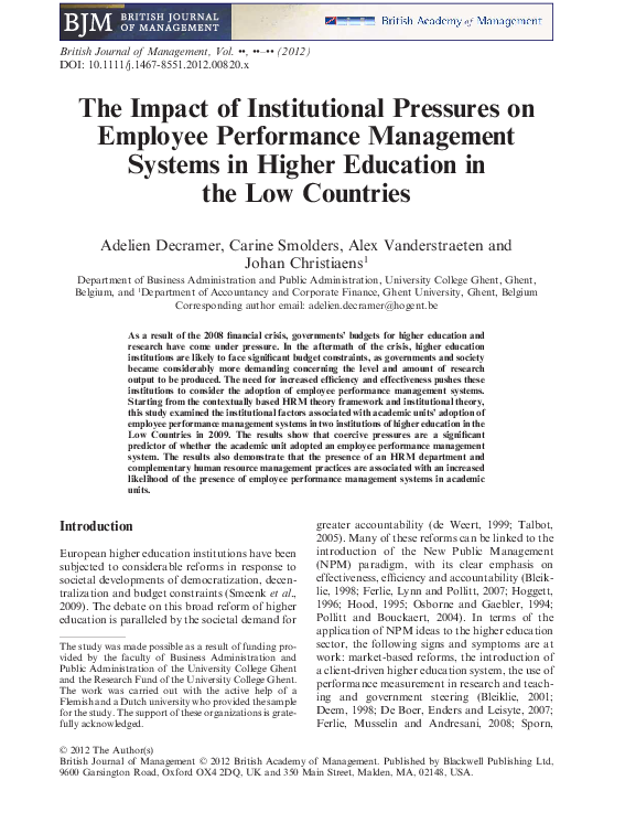 (PDF) The Impact of Institutional Pressures on Employee Performance