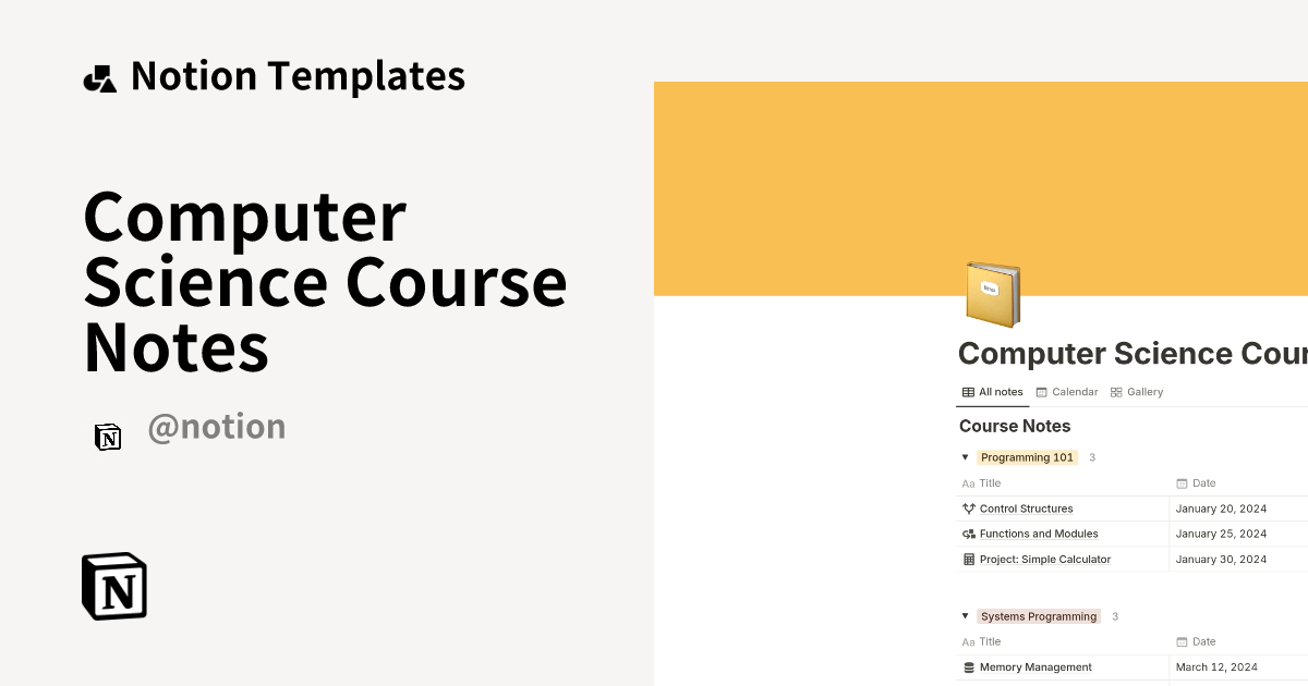 Computer Science Course Notes Template by Notion Notion Marketplace
