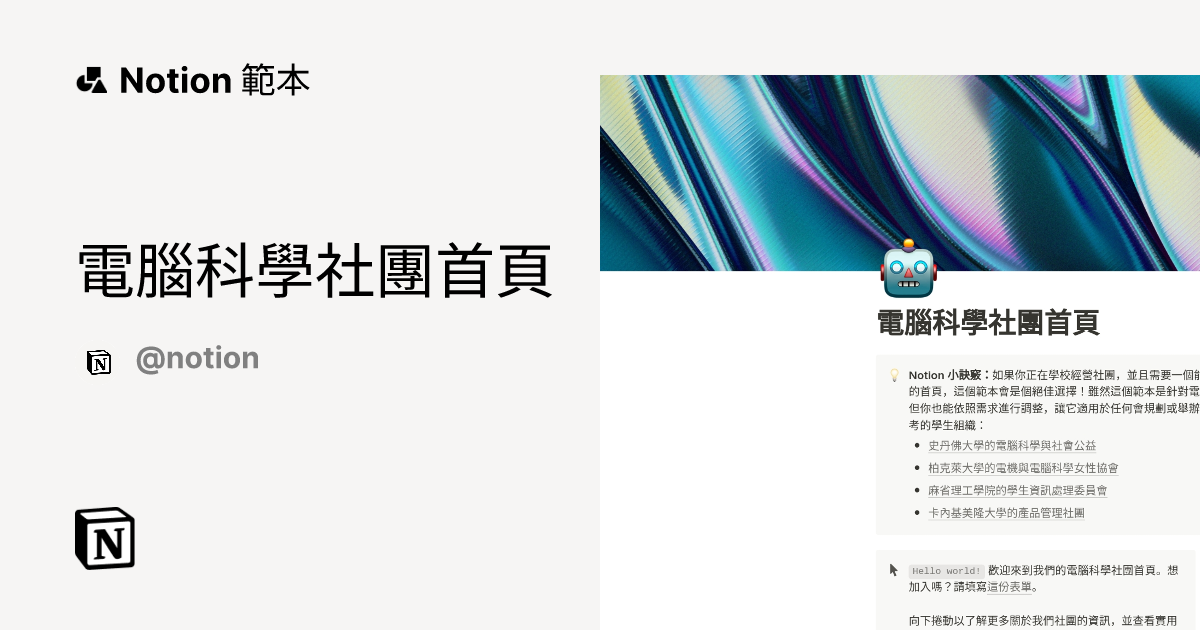 由 Notion 建立的 電腦科學社團首頁 範本 Notion Marketplace